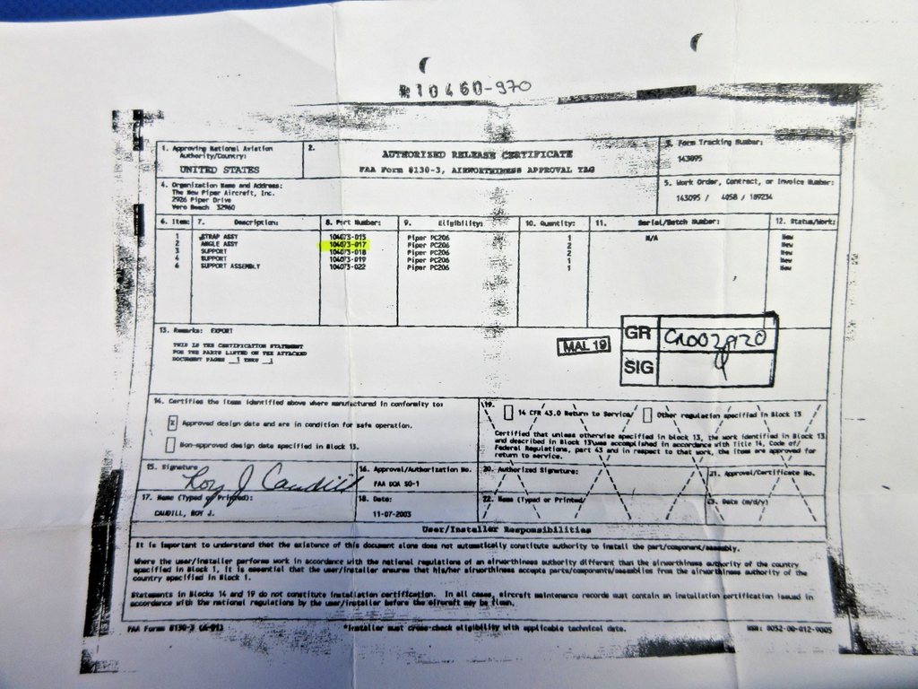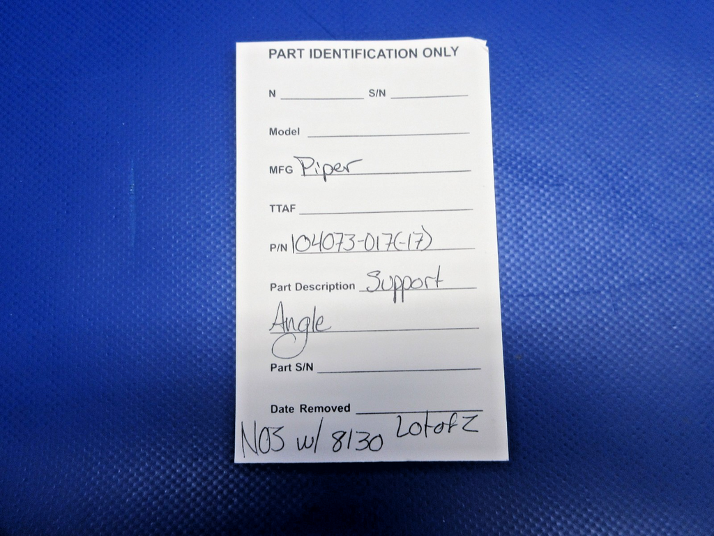 Piper Support Angle With 8130. P/N 104073-017, 104073-17. LOT OF 2. NEW OLD STOCK. Guaranteed to pass inspection or your money back.