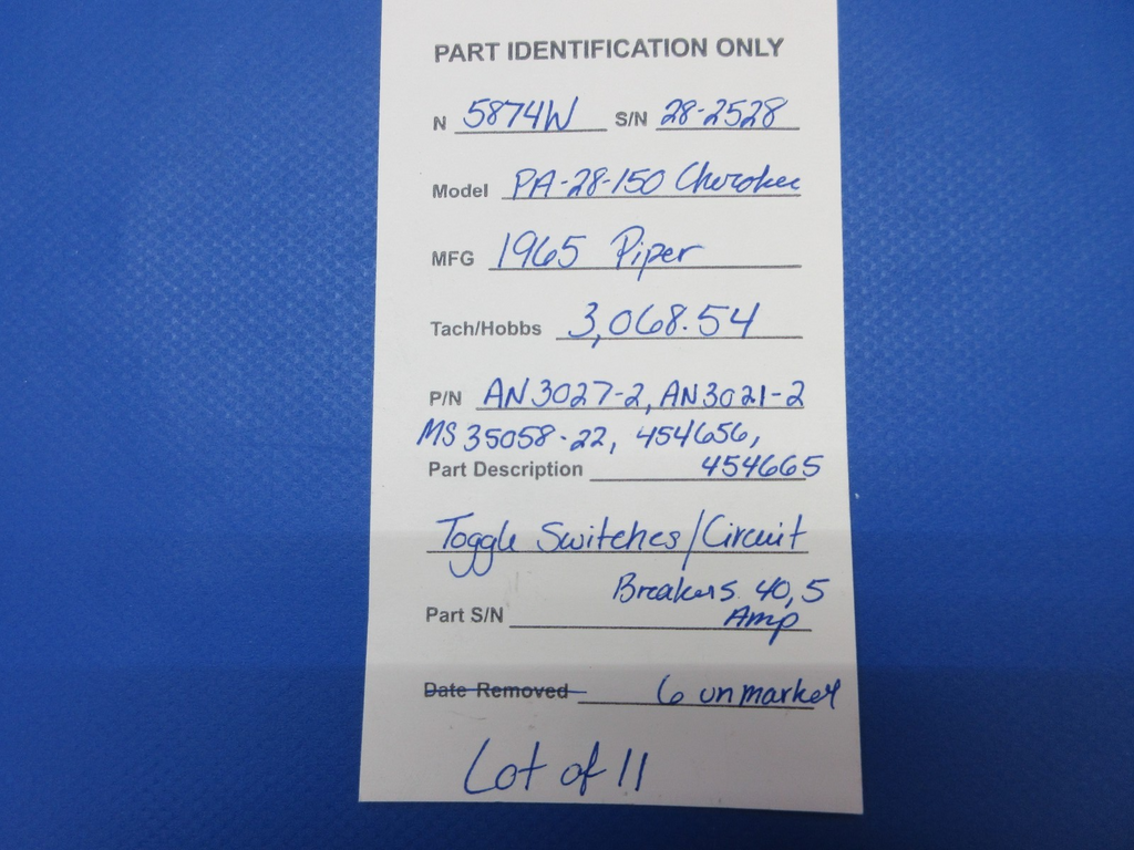 Piper Toggle Switches/Circuit Breakers 40, 5 Amp AN3027-2 LOT OF 11 (0525-1309)