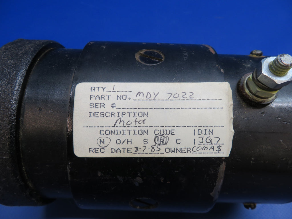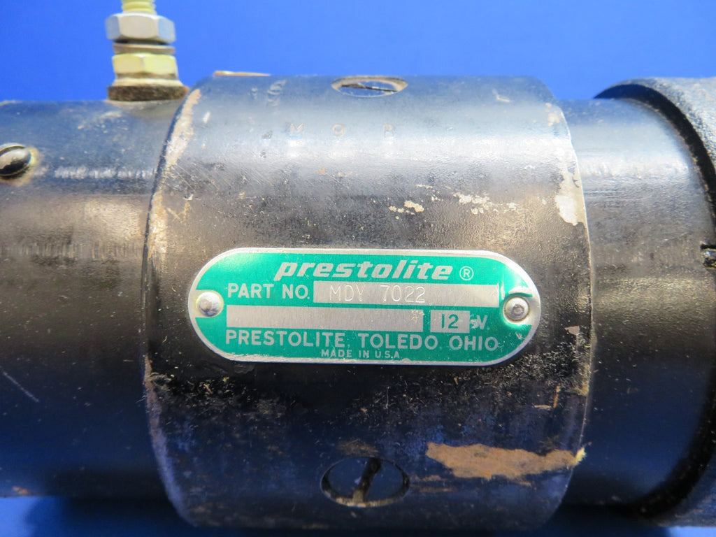 Prestolite Electric Motor. 12 Volts. P/N MDY7022. This item was recently bench tested at 12 Volts and found to be in working condition. Guaranteed to pass inspection or your money back.