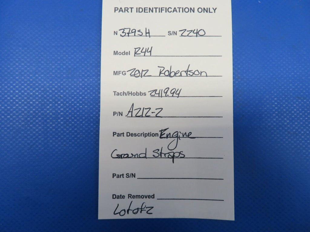 Robinson R44 Raven II Helicopter Engine Ground Straps. P/N A212-2. LOT OF 2. Removed in good condition from a parted out 2012 Robinson R44 Raven II N379SH, S/N 2240. TTAF 2,419.94. Guaranteed to pass inspection or your money back.