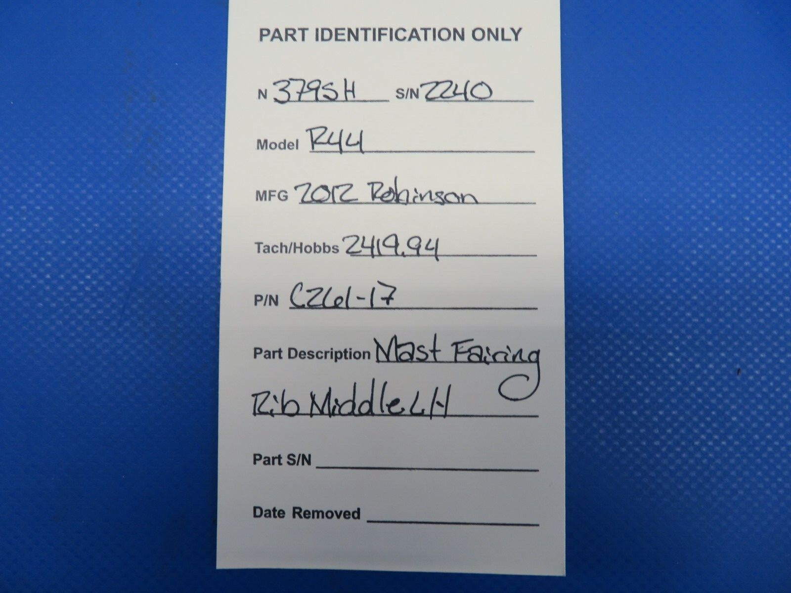 Robinson R44 Raven II Helicopter Mast Fairing Rib Middle Left Hand. PN C261-17. Removed in good condition from a parted out 2012 Robinson R44 Raven II N379SH, S/N 2240. TTAF 2,419.94. Guaranteed to pass inspection or your money back.