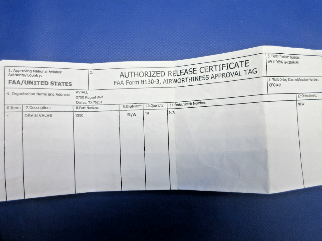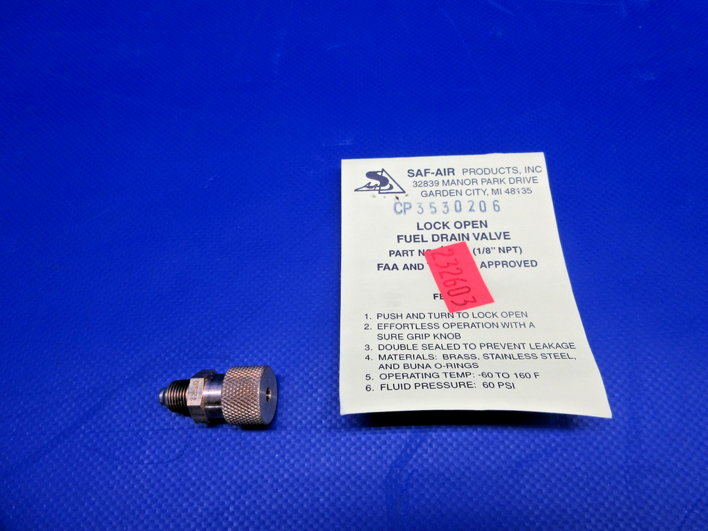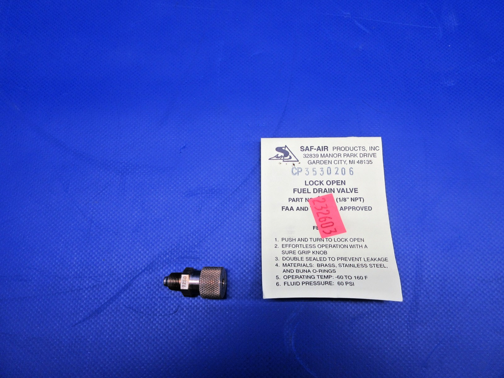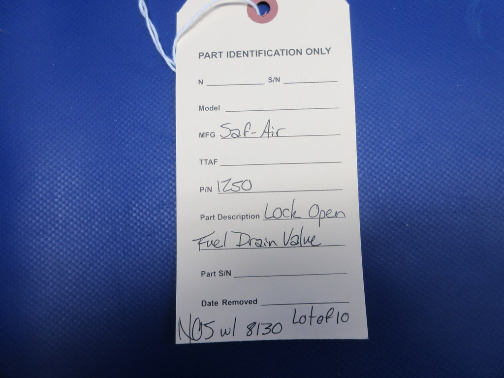 Saf-Air Lock Open Fuel Drain Valve With 8130. P/N 1250. LOT OF 10. NEW OLD STOCK. Guaranteed to pass inspection or your money back.