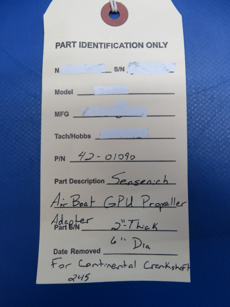 Sensenich Air Boat GPU Propeller Adapter 4201090 2" Thick 6" Dia. (0625182)