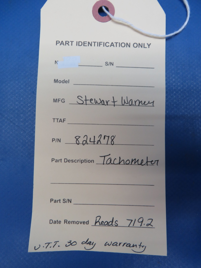 Stewart Warner Tachometer P/N 824278 Reads 719.2 WARRANTY (0825-203)