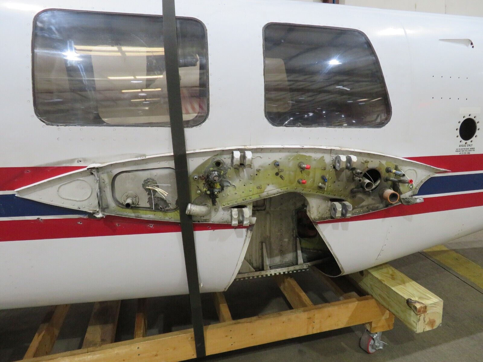 Contact us for more pictures. We are able to remove / cut off sections of this fuselage for purchase & shipping. If interested in the entire fuselage-- please note--it is pick up only.