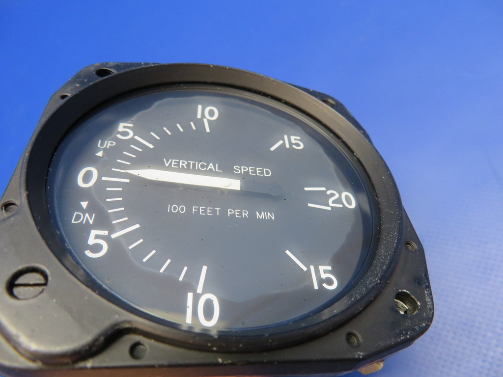 United Instruments Vertical Speed Indicator. P/N 7000, 7000C.32. Cessna P/N C661080-0101. S/N F8550. Code C.32. Glass has some speckles on it, see photos. We are unable to test this unit, however, we are selling this unit with a 30 day warranty. Removed in good condition from a parted out 1965 Beech D95A Travel Air N5856S, S/N TD-632 TTAF 6,593.4. Guaranteed to pass inspection or your money back.