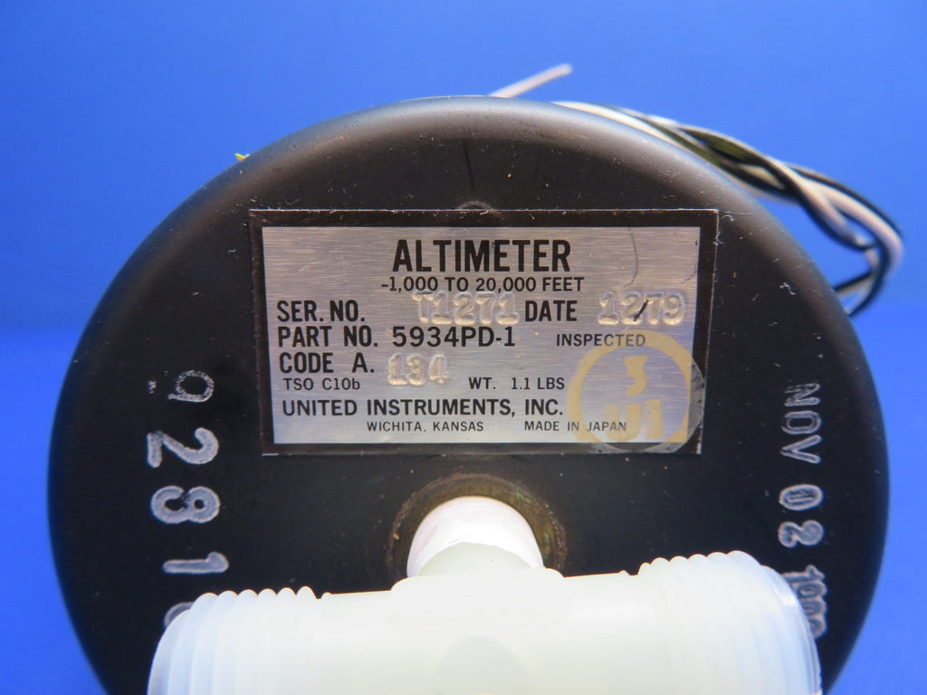 United Instruments Altimeter P/N 5934PD-1 WARRANTY (0925-1701)