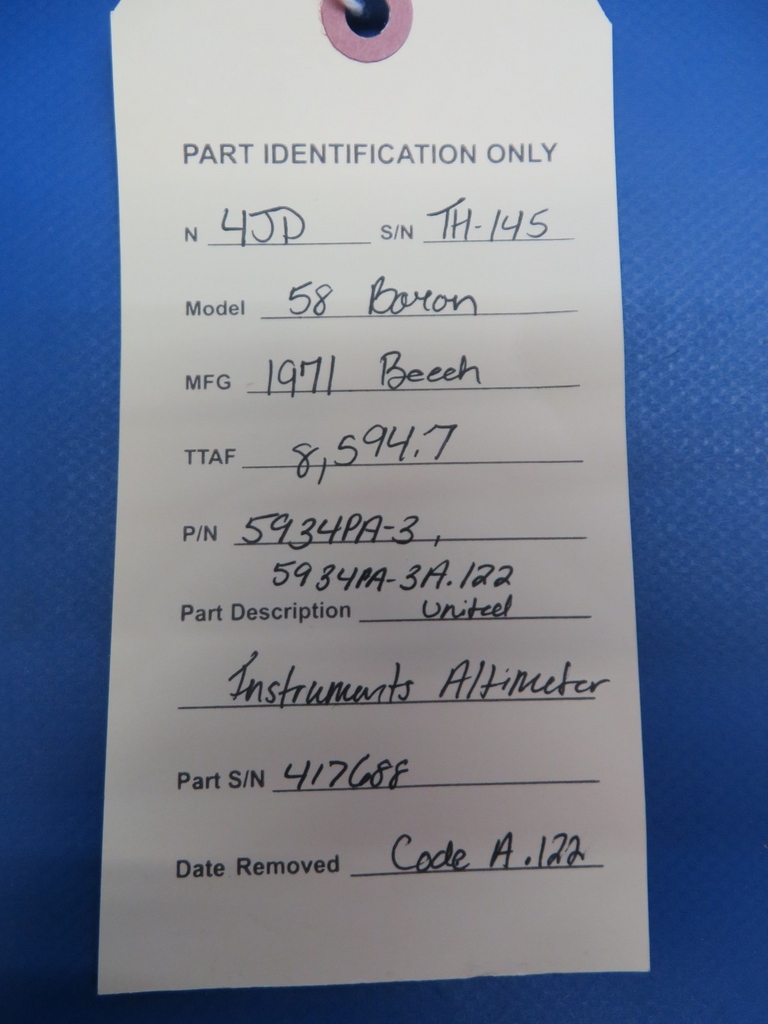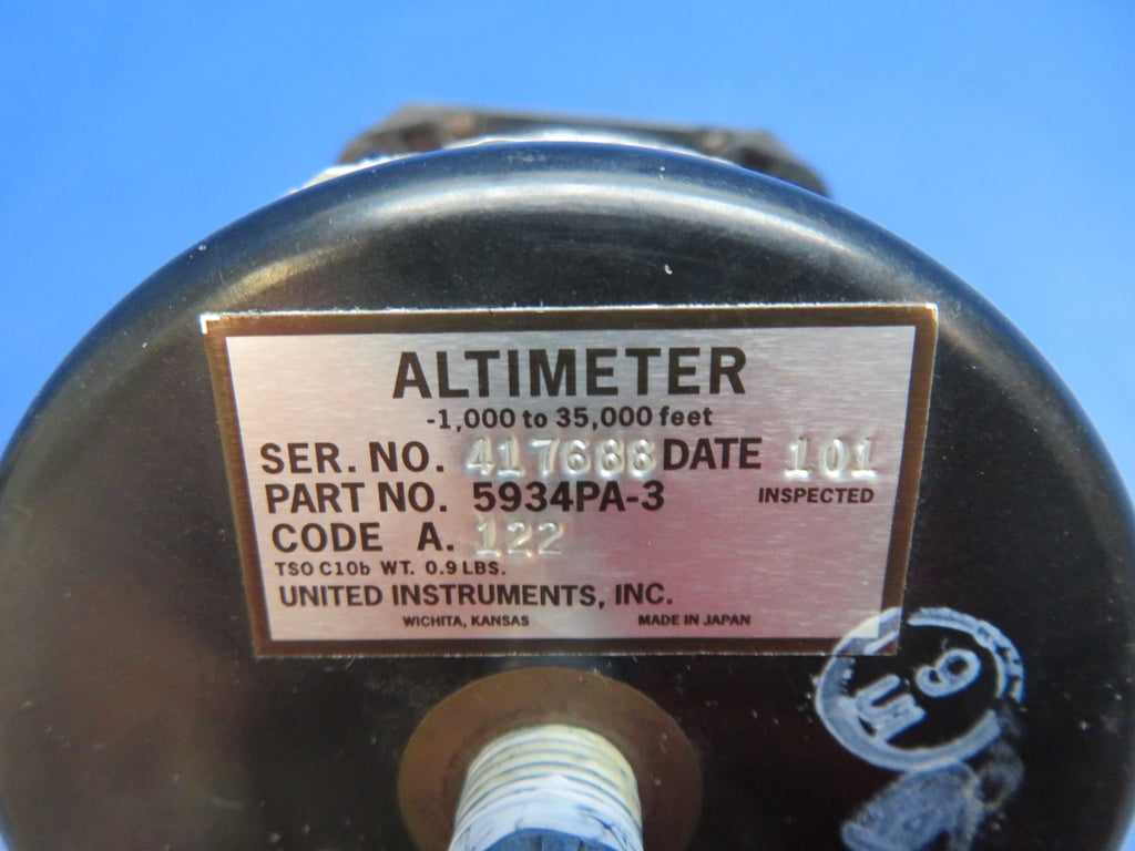 United Instruments Altimeter PN 5934PA-3, 5934PA-3A.122 (0825-149)