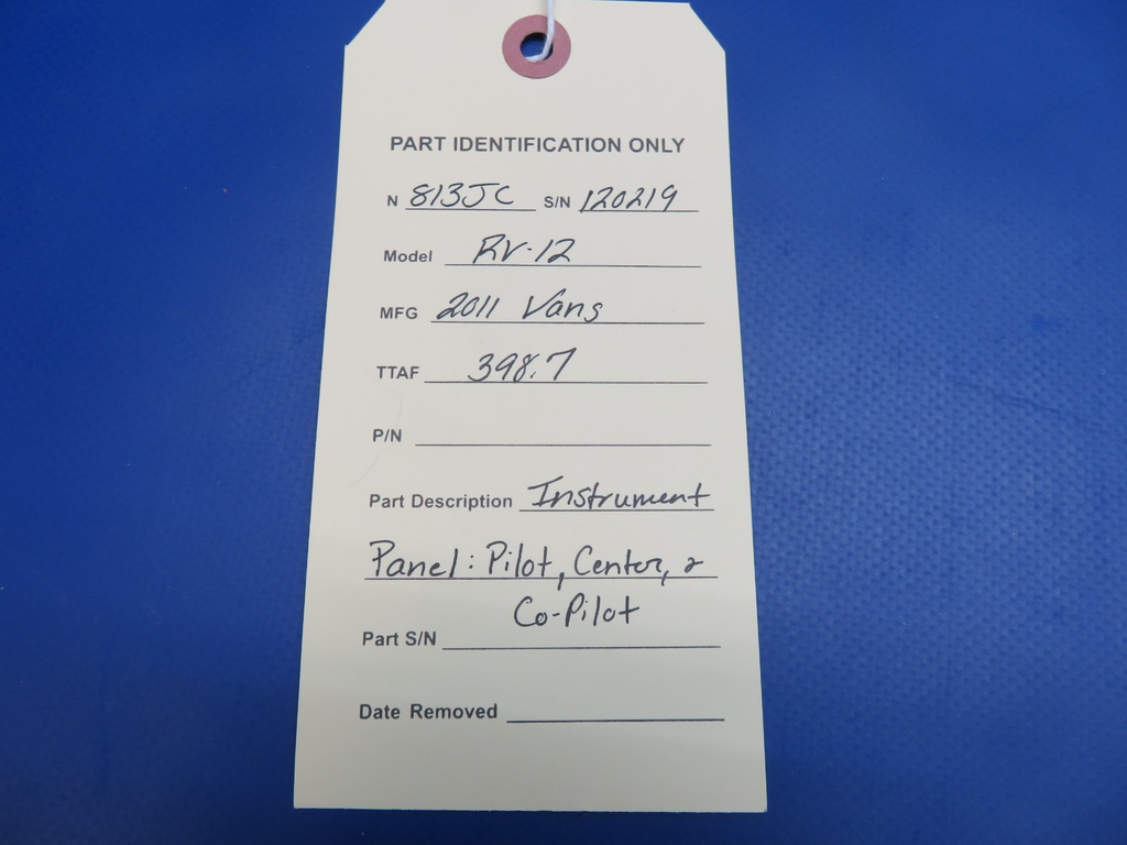 Van's Aircraft RV-12 Instrument Panel: Left Hand, Right Hand, and Center. Removed in good condition from a parted out 2011 Vans Aircraft RV-12 S/N 120219, N813JC. TTAF 398.7. Guaranteed to pass inspection or your money back.