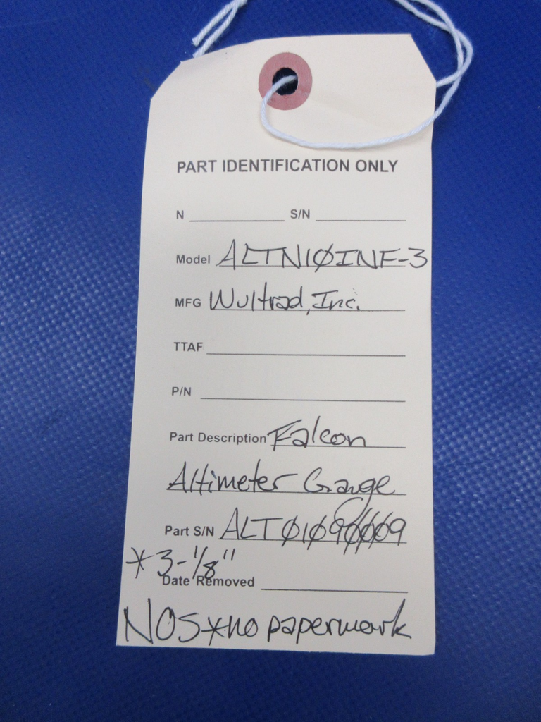 Wultrad, Inc. ALTN10INF-3 Falcon Altimeter Gauge. S/N ALT 01090009. 3-1/8" Diameter Face. NEW OLD STOCK. No paperwork. Guaranteed to pass inspection or your money back.